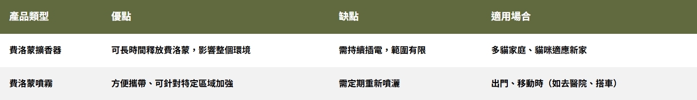 四、貓咪費洛蒙產品推薦與比較