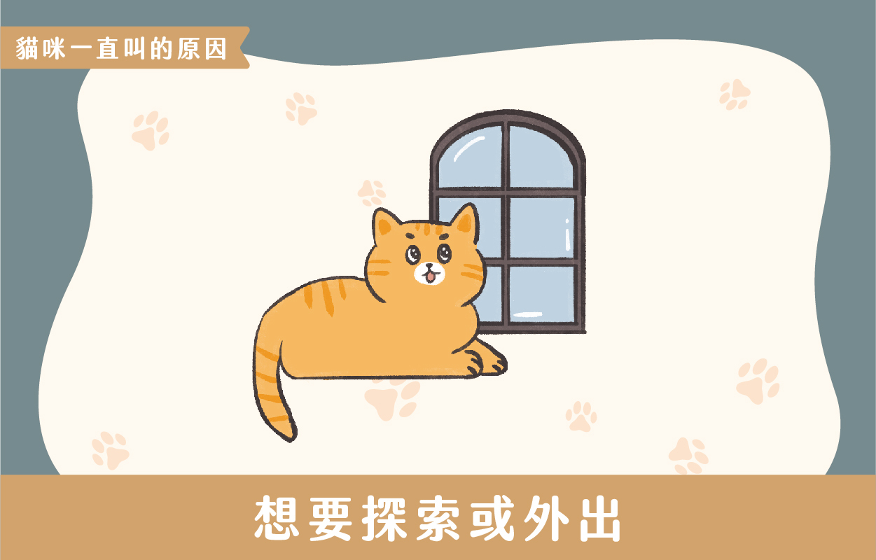 貓咪是好奇心很強的動物,他們喜歡寓處探索周圍的環境,但如果貓咪被限制在室內,無法外出探險,他們會用叫聲表達對外界的渴望,這種時候你會看到他們站在窗戶旁邊,盯著外面的景色叫喊,或者在門口要求主人讓他們出去。提供一個安全且有足夠刺激的環境,可以幫助減少這種叫聲。為貓咪提供攀爬架、玩具和探險的機會,可以滿足他們的探索需求。